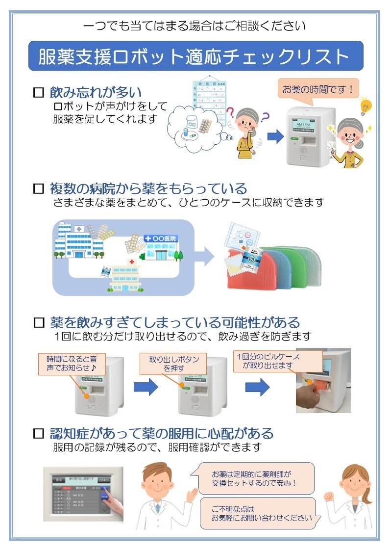 お薬の飲みすぎ・飲み忘れを防ぎます。